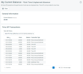 The Time Summary page provides an overview of your paid time off entitlement for the current year. You can select a different year from the drop-down box at the top of the page.