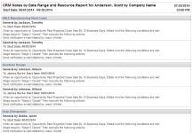 All system, task, ticket, and project notes for a selected date range, sorted by resource and note type. |