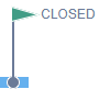 Status Flags appear on the upper bar of the timeline, and each one represents a change in the status of the opportunity. The flag is labeled with the name of the status it was changed to on that date. If the status is changed to Active or Not Ready to Buy, the flag will be blue. If the status is Lost, the flag will be red. If the status is Closed or Implemented, it will be green.