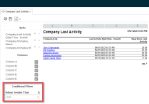 If you click the filter icon, the report is refreshed, and only records that meet the condition are displayed. The conditional filter is now displayed on the interactive panel dock of the report viewer.