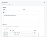 On the Checklist Library page, you can add, edit, and delete checklists for opportunities, tasks, and tickets. Users with the required permissions can also add checklists to the library from the Edit Ticket, Edit Task, and Edit Opportunity pages and from the Form Template Editor pages of the same entities.