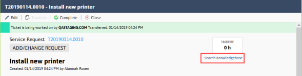 Your client users can also easily access your Knowledge Base through a Search Knowledge Base button on the Service Request form: