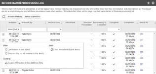 Process Log for All Invoices in this Batch | Opens a .CSV file of process log entries that only show the invoices in this batch. |