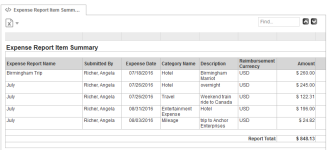 A list of submitted Expense Reports based on the selected criteria. The amount column in the report shows the total for the related Expense Report.