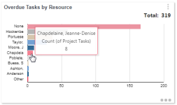 Advanced Visualization Type: A bar or column chart where the bar or column is divided into segments that each represent a subset of the whole. For example, a column might display a total count of tickets assigned to one resource, with segments representing the number of tickets in different statuses. |