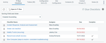 Opens the specific checklist in IT Glue to the list of tasks. |