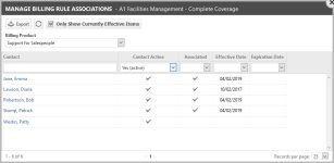 Associated | Displays a check mark if the contact or device is currently associated with the selected billing rule's billing product. |