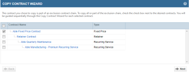 - If the contract you are copying has one or more exclusion contracts, you'll be prompted to select which, if any, associated exclusion contracts you want to make copies of, as well.