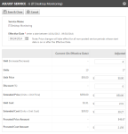 After you add or remove units, displays the prorated cost of the changes for the billing period; that is, the unit cost for the service or service bundle, prorated to display the cost for the number of days from the Effective Date through the end of the billing period in which units are added or removed. Refer to Prorated Price Amount, above, for example of calculations. NOTE If you do not have permission to view internal cost data, this field is not visible. |