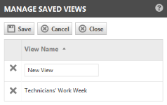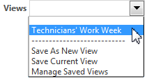 A view on the Dispatch Calendar allows you to display preselected workgroups and resources. The current date range is not impacted, and can be freely selected.