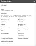 • On the Charge Detail, the Billable Amount is displayed in the customer currency, and the Extended Cost is displayed in the internal currency.