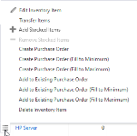 On the Stocked Items tab, you do the following: