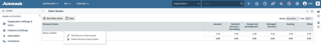 To delete a resource from the list, click the context menu and select Delete Resource Sales Quota.