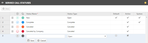 - On the Service Call Statuses page, click New.