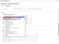 TIP The Conditions list of attributes includes your local organization's user-defined fields. Refer to User-Defined Fields (UDFs) in workflow rules.