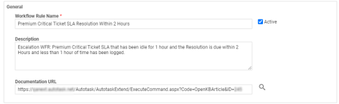 Documentation URL | Enter a link to a document with text or diagrams that explain how this workflow rule works in your local organization's process. Click the ![]() |