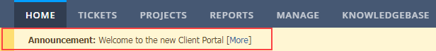 Client users will see a "Announcement" line in the Client Portal: