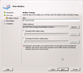 - In the right navigation pane, click New Mailbox. The New Mailbox Wizard opens: