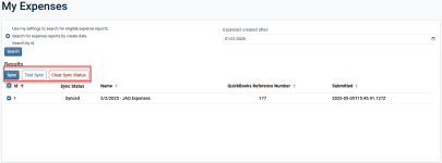 The My Expenses page is dedicated to manually searching for one or multiple expense reports for the purpose of syncing or re-syncing, if necessary.